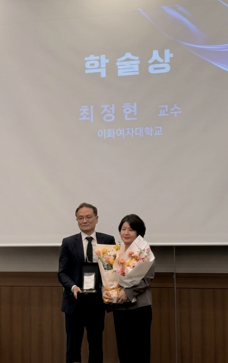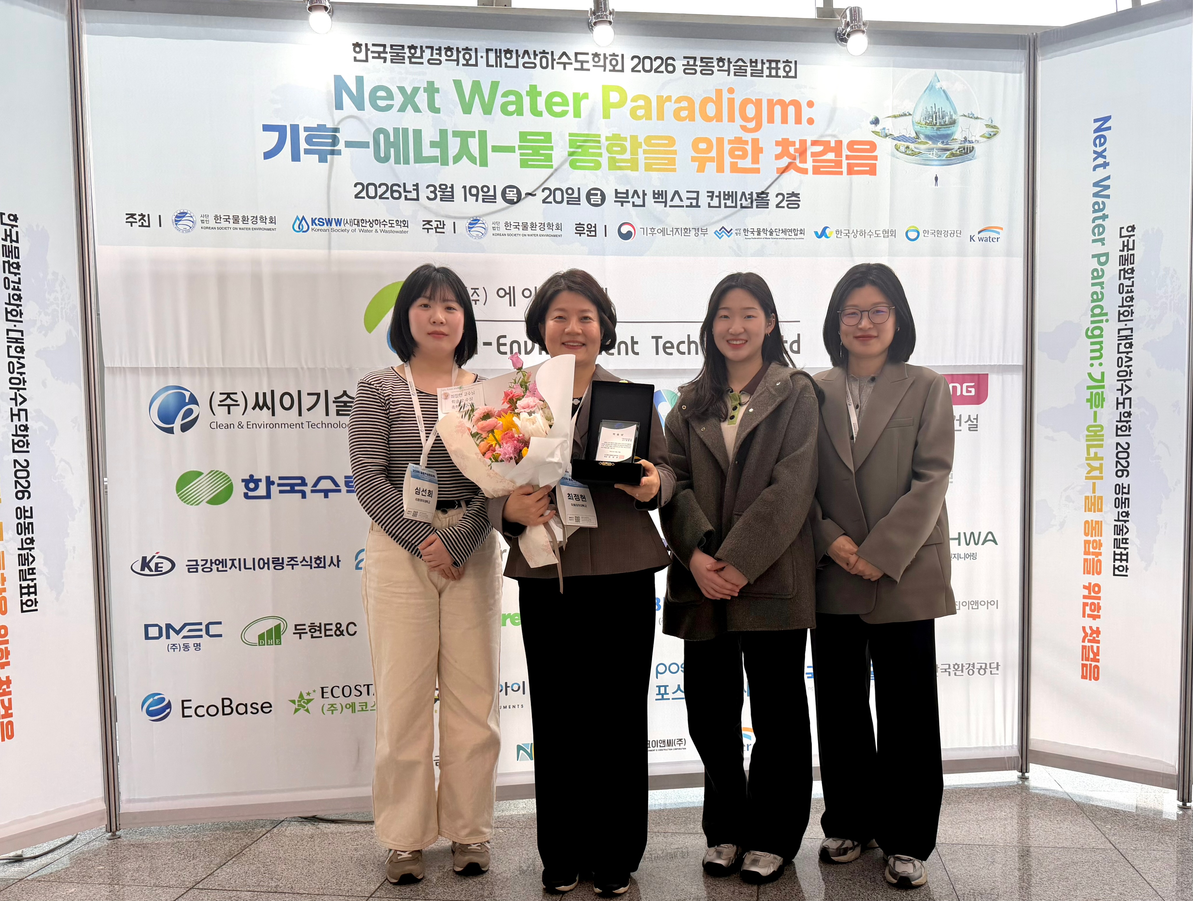 이화여대 공학융합연구원의 원장이신 최정현 교수님께서 2026년 3월 19일 부산 벡스코에서 열린 한국물환경학회 총회에서 학술상을 수상하셨습니다.